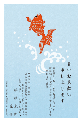 - 夏の暑さも吹き飛ばすように力強く水面から飛び上がる金魚をデザインしました。