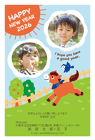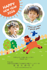- 一年の楽しい思い出写真を入れて新年の挨拶ができるよう、明るいデザインにしてみました。