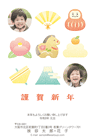 - お正月のおめでたいモチーフを可愛らしく描きました。さりげなく写真を添えられる使いやすいデザインです。