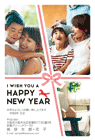 - かわいい水引風のリボンがポイントの写真が3枚入るデザインです。