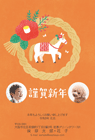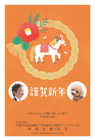 - しめ縄に椿をあしらい内側に白馬を添えた縁起の良い和風デザインです。
