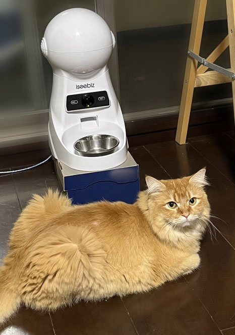 ★自動エサ機を揺らすと固形フードがポロポロと落ちてきます。そのことをわかっている食いしん坊のむぎはお腹が空くといつもその周りをうろうろして自分で揺らして食べてます