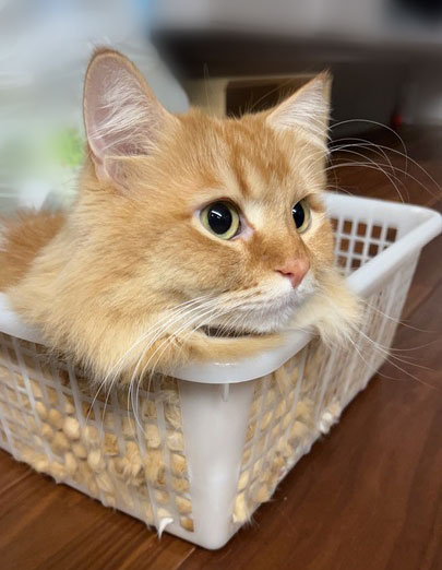 ★箱やかごが大好き、身体を丸めて入れるところにはとりあえず入って丸くなります