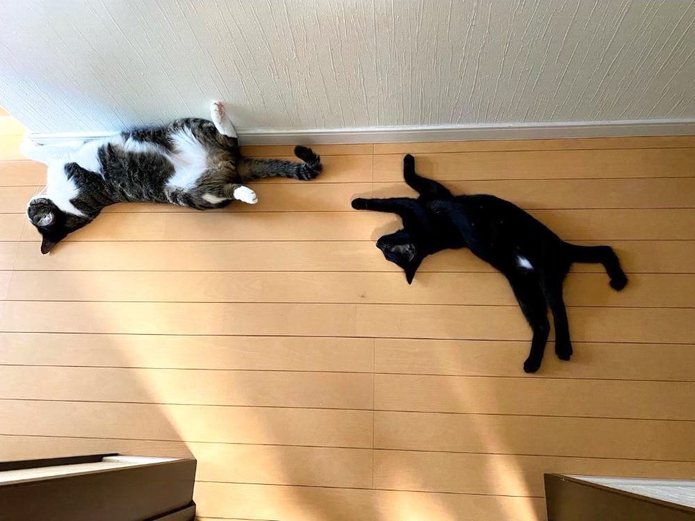 (サバ白がはっちちゃん、黒猫がくっくちゃん)