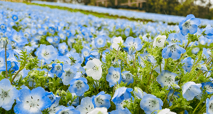 春の時期にはネモフィラやポピーが丘一面に咲き誇り、思わず写真を撮りたくなるような素敵な景色が待っていますよ。