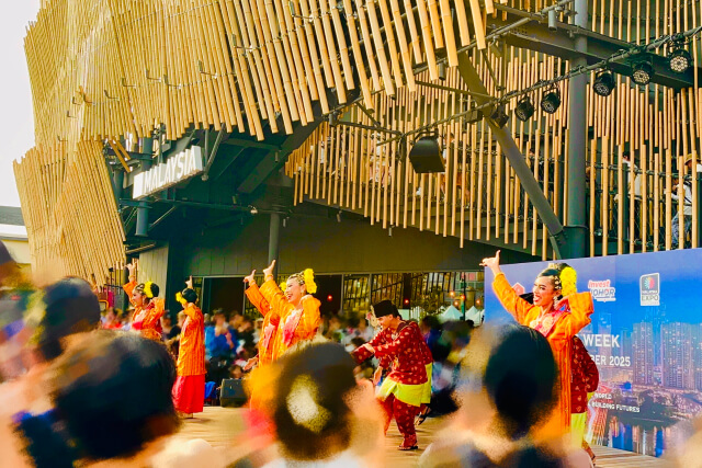 パビリオンを出るとたまたまマレーシアの民族音楽のステージが始まったところでした!