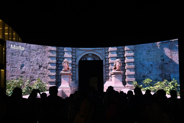 マルタはパビリオン前のスクリーンがマルタの風景をずっと映しているので、待ち時間から現地の雰囲気を味わいながら待てます。